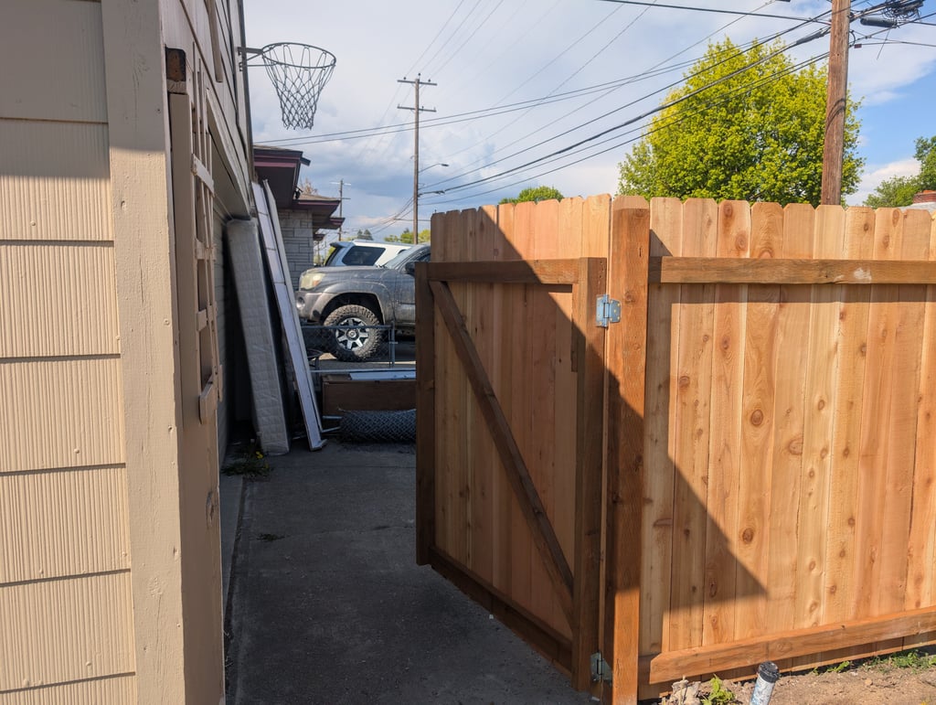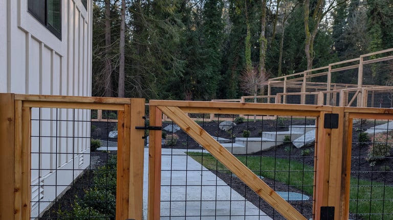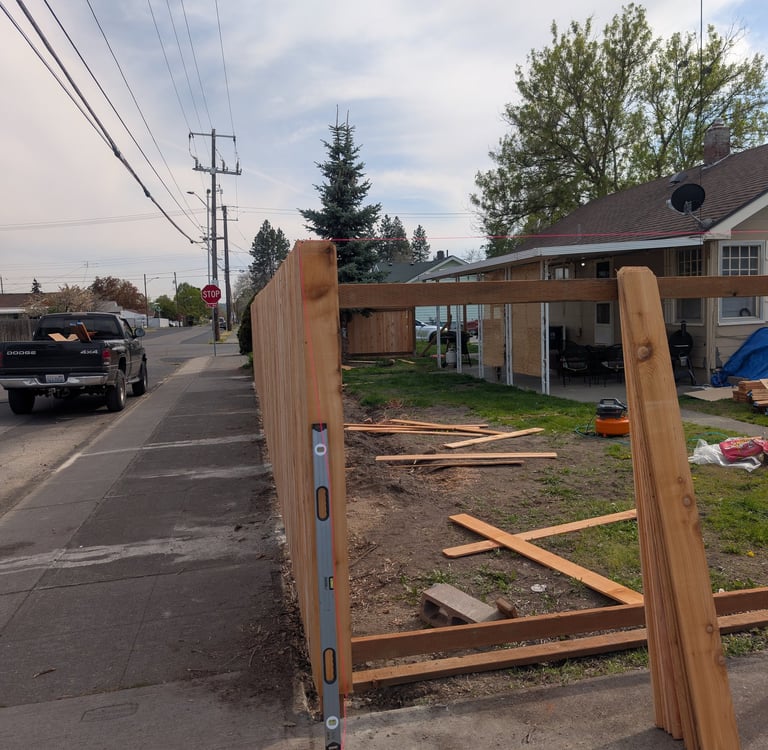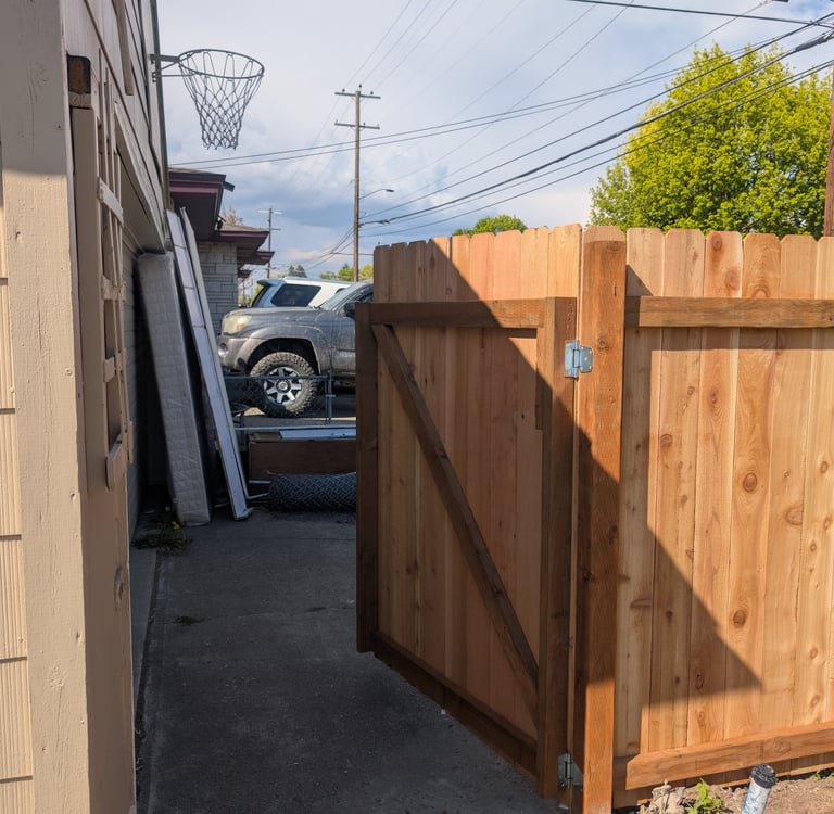 For a sound, robust and good looking fence, it all starts with plumb posts, level frame rails, and the proper amount of concrete to anchor the posts. all of these factors, when done right combine to make an extremely sturdy fence that will hold up to the Pacific Northwest's temperamental weather.